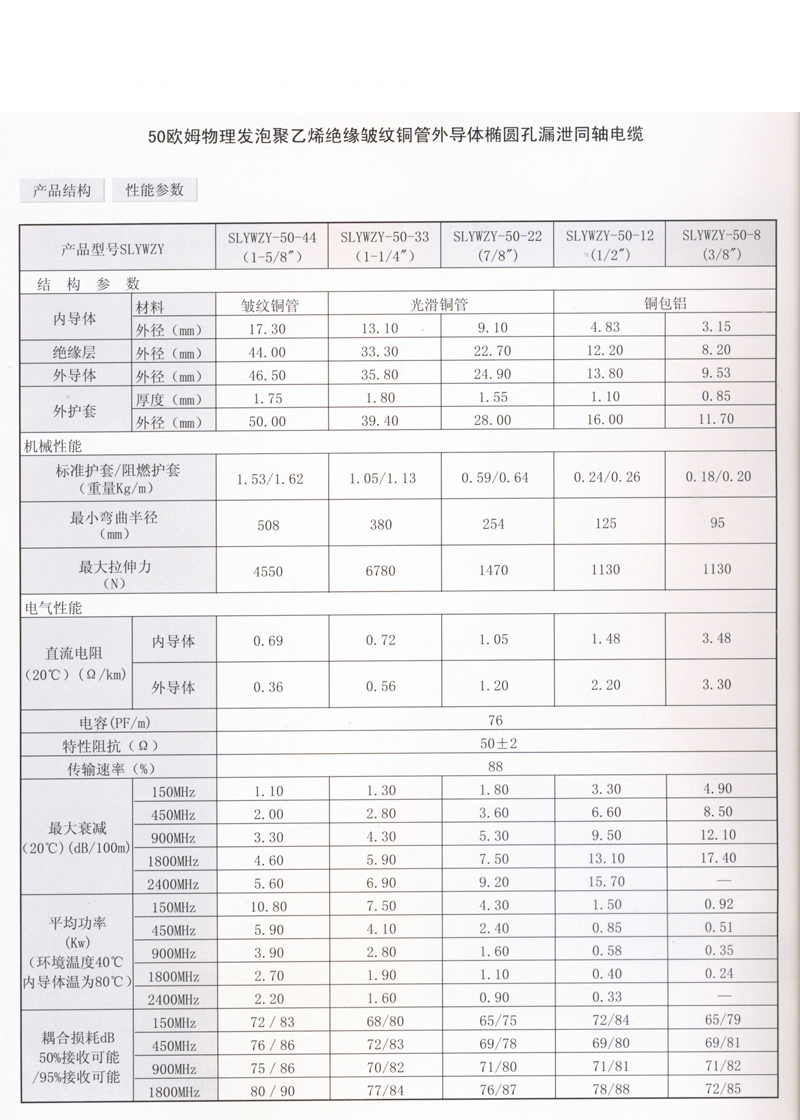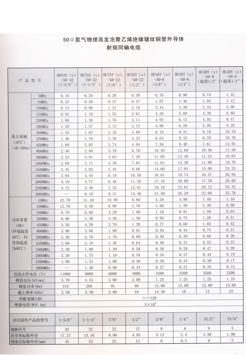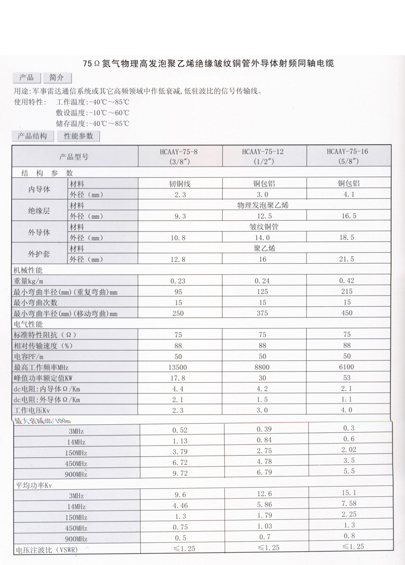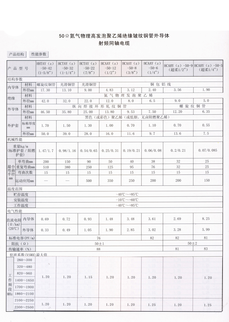 氮气物理高发泡聚乙烯绝缘皱纹铜管外导体射频同轴电缆