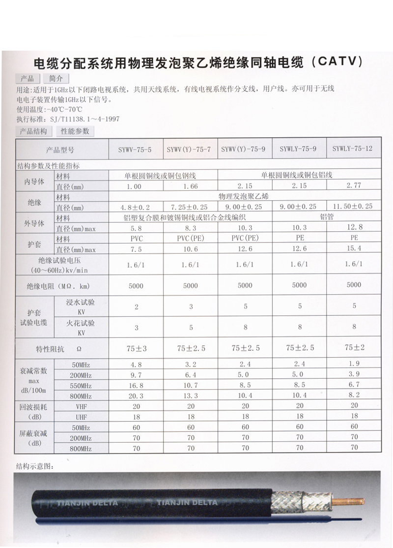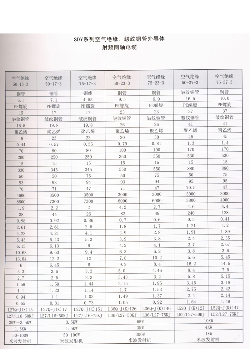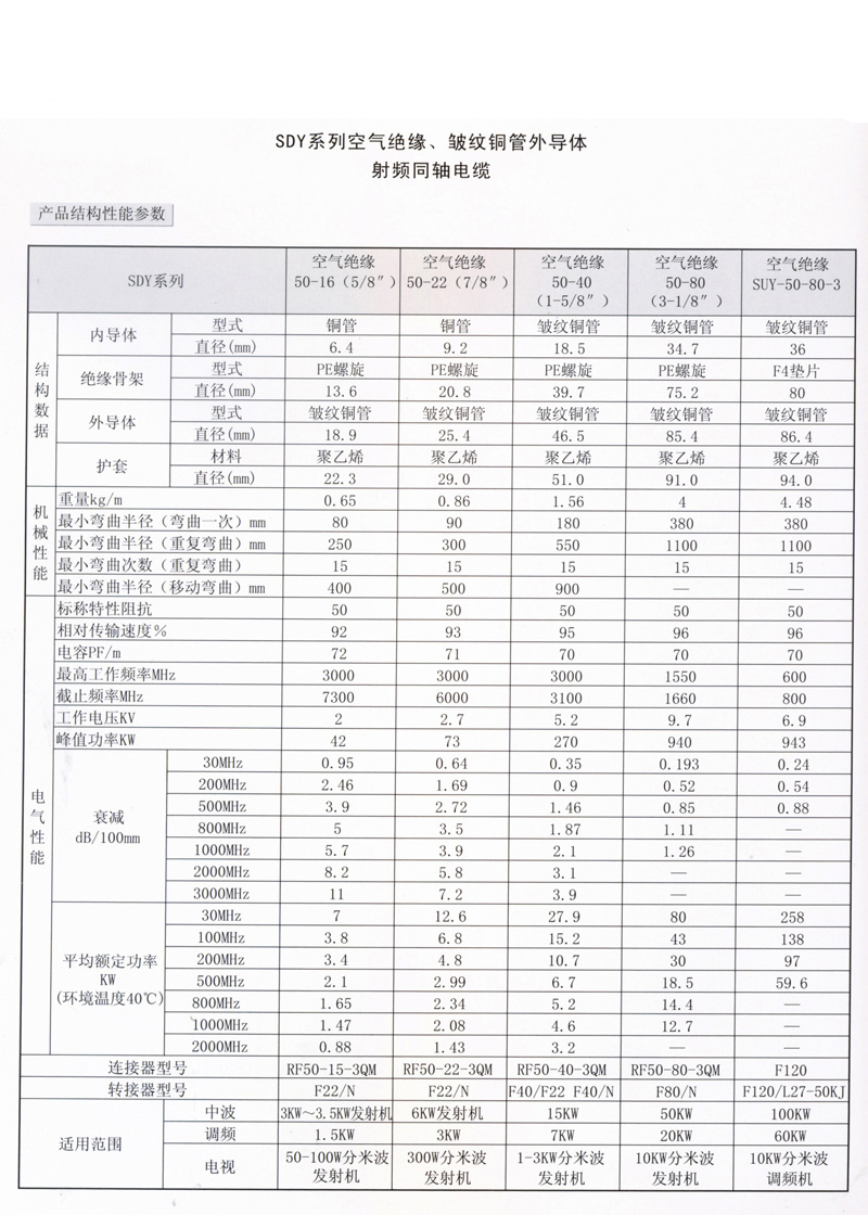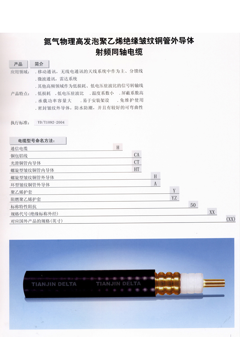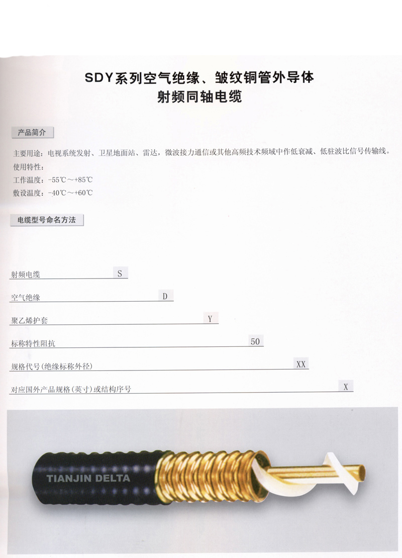 氮气物理高发泡聚乙烯绝缘皱纹铜管外导体射频同轴电缆