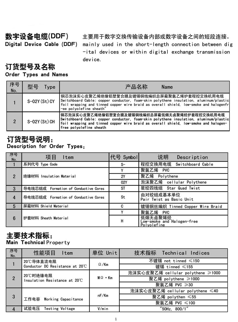 数字设备电缆(DDF)